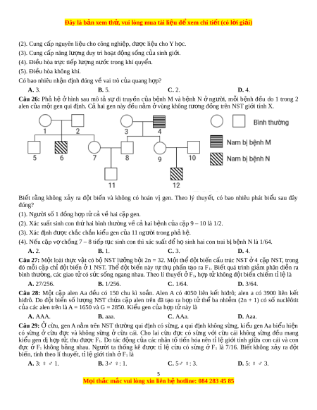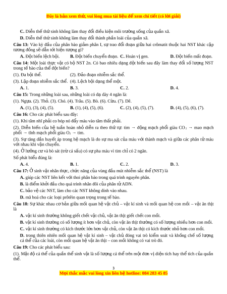 Đây là bản xem th , vu ử i lòng mua tài li u ệ đ xe ể m chi ti t ế (có l i ờ gi i ả ) C. Di n t ễ h t ế h s ứ inh không làm thay đ i ổ đi u ki ề n m ệ ôi trư ng ờ s ng c ố a ủ qu n xã ầ . D. Di n t ễ h t ế h s ứ inh không làm thay đ i ổ thành phần loài c a ủ qu n xã ầ . Câu 13: Vào kỳ đ u ầ c a ủ phân bào gi m ả phân I, sự trao đ i ổ đo n ạ gi a ữ hai crômatit thu c ộ hai NST khác c p ặ tư ng ơ đ ng ồ s d ẽ ẫn t i ớ hi n t ệ ư ng ợ gì? A. Đ t ộ biến l c ệ h b i ộ . B. Đ t ộ bi n c ế
