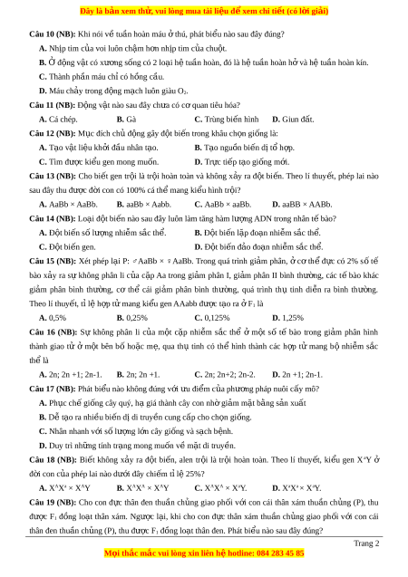 Đây là bản xem th , vu ử i lòng mua tài li u ệ đ xe ể m chi ti t ế (có l i ờ gi i ả ) III. Tất cả các đ t ộ biến đa b i ộ lẻ đ u l ề àm tăng hàm lư ng ợ ADN t ở rong nhân t bà ế o. IV. Tất cả các đ t ộ biến đa b i