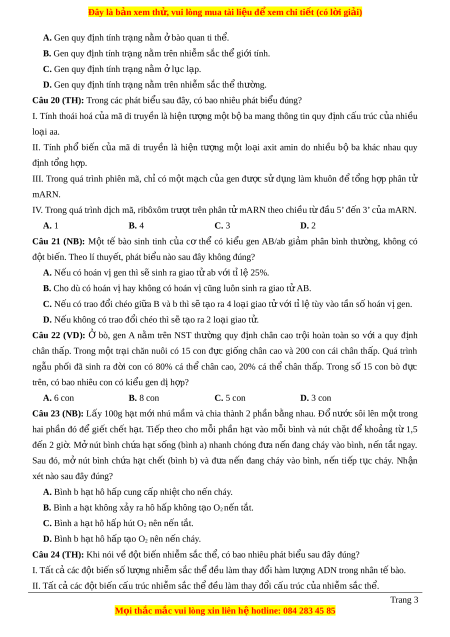 Đây là bản xem th , vu ử i lòng mua tài li u ệ đ xe ể m chi ti t ế (có l i ờ gi i ả ) A. Gen quy đ nh t ị ính trạng nằm bà ở o quan ti th . ể B. Gen quy đ nh