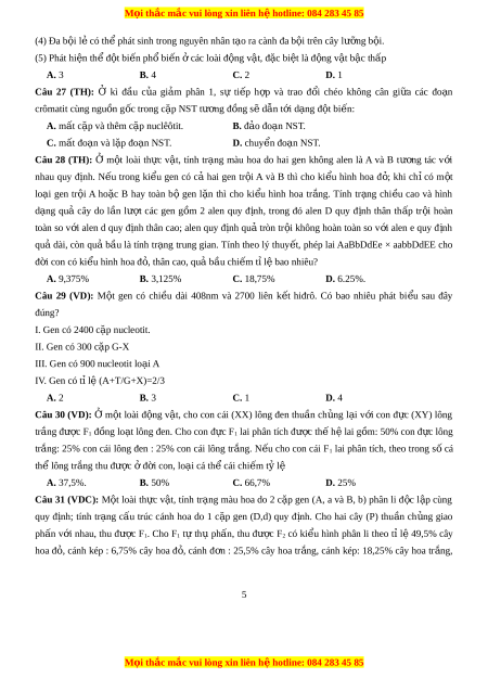 ệ otline: 084 283 45 85 (5) ATP; (6) Ribosome; (7) Axit amin; (8) ADN polimeraza; S l ố ư ng ợ các y u t