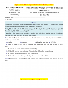 KỲ THI ĐÁNH GIÁ NĂNG LỰC XÉT TUYỂN SINH ĐẠI HỌC TRƯỜNG ĐẠI HỌC Bài thi: SINH HỌC SƯ PHẠM HÀ NỘI