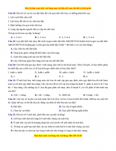 Câu 20: Cho biết mỗi gen quy định 1 tính trạng, alen trội là trội hoàn toàn. Theo lí thuyết, có bao nhiêu phép