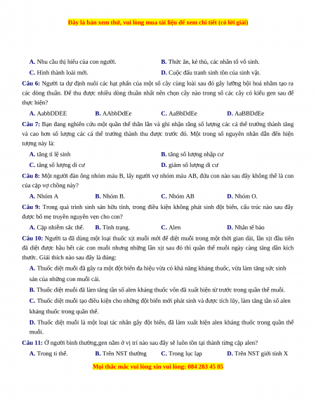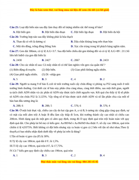 Đây là bản xem thử, vui lòng mua tài liệu để xem chi tiết (có lời giải)