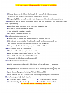 Câu 20: Đột biến thay thế một cặp nuclêôtit xảy ra vùng khởi động của Operon Lac ở vi khuẩn E Coli thì