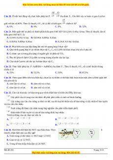 Câu 23. Thực hiện phép lai: P: AaBbDd × AaBbDd, thu được F1. Theo lí thuyết, ở F1, số cá thể thuần chủng chiếm tỉ lệ A. 25%. B. 12,5%. C. 50%. D. 87,5%.