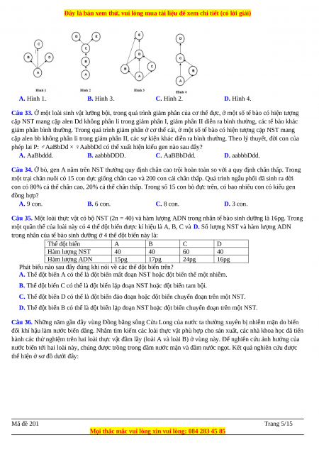 Câu 33. Ở một loài sinh vật lưỡng bội, trong quá trình giảm phân của cơ thể đực, ở một số tế bào có hiện tượng
