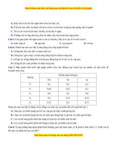 Câu 7: Một quần thể sinh vật ngẫu phối chịu tác động của chọn lọc tự nhiên có cấu trúc di