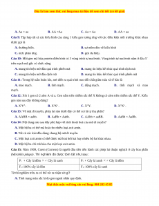 Câu 13: Về mặt di truyền, phép lai nào dưới đây có thể coi là tự thụ phấn? A. AABB × aabb. B. AaBb × Aabb. C. AAbb × aaBB. D. AaBb × AaBb.