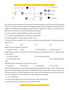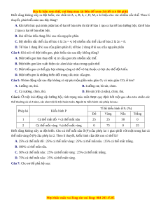 ầ thể qua 5 thế hệ liên ti p ế thu được kết quả: Thành phần kiểu Thế h F ệ ế ệ ế ệ ế ệ ế ệ gen 1 Th h F2 Th h F3 Th h F4 Th h F5 AA 0,64 0,64 0,2 0,16 0,16 Aa 0,32 0,32 0,4 0,48 0,48 aa 0,04 0,04 0,4 0,36 0,36 Nhân t gâ ố y nên s t ự hay đ i ổ cấu trúc di truy n c ề a ủ qu n t ầ h ể t ở h h ế F ệ 3 là A. giao ph i ố không ngẫu nhiên. B. đ t ộ bi n. ế C. giao ph i ố ngẫu nhiên. D. các y u t ế ố ngẫu nhiên. Câu 17: M t