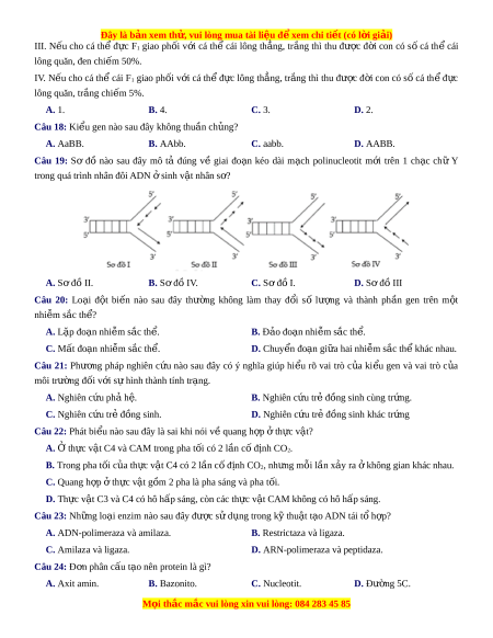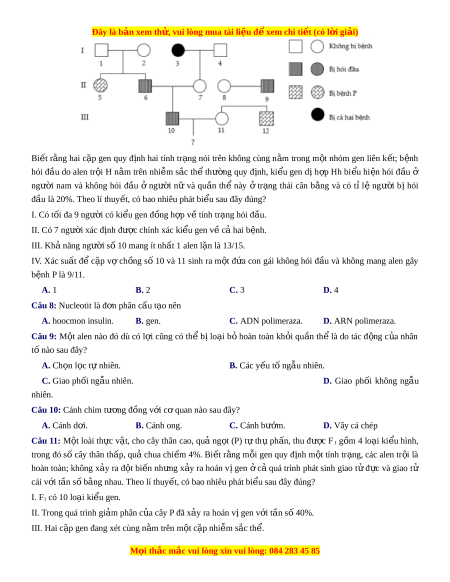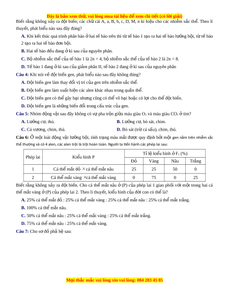 Đây là bản xem th , vu ử i lòng mua tài li u ệ đ xe ể m chi ti t ế (có l i ờ gi i ả ) Biết rằng hai c p ặ gen quy đ nh ị hai tính tr ng