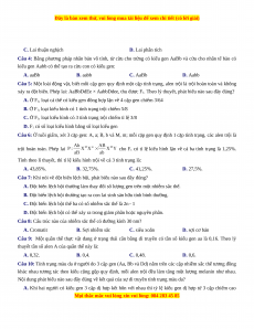 Câu 25: Cho biết gen trội là trội hoàn toàn, không xảy ra đột biến. Theo lý thuyết, phép lai nào sau đây cho