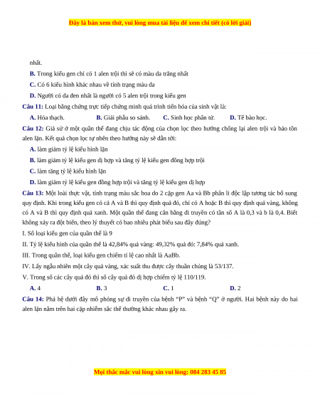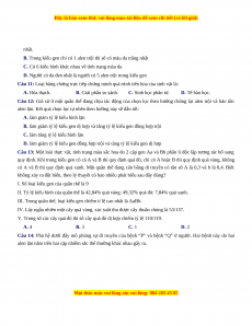 Câu 10: Tính trạng màu da ở người do 3 cặp gen (Aa, Bb và Dd) nằm trên các cặp nhiễm sắc thể tương đồng