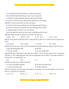 Câu 16: Theo lý thuyết, cơ thể mang kiểu gen XAXaBb giảm phân bình thường sẽ không sinh ra loại giao tử nào? A. XAXab B. XaB C. XAB D. Xab