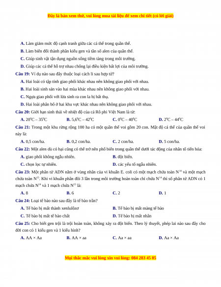 Câu 18: Trong quần thể, sự phân bố ngẫu nhiên của các cá thể có ý nghĩa là:
