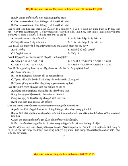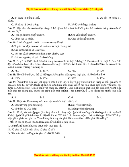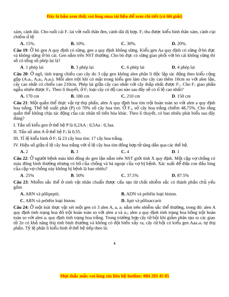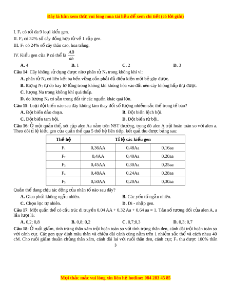 Đây là bản xem th , vu ử i lòng mua tài li u ệ đ xe ể m chi ti t ế (có l i ờ gi i ả ) I. F1 có t i ố đa 9 loại ki u ge ể n. II. F1 có 32% s c ố ây đ ng ồ h p t ợ v ử 1 c ề ặp gen. III. F1 có 24% s c