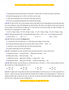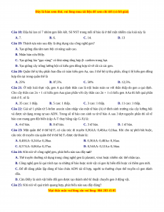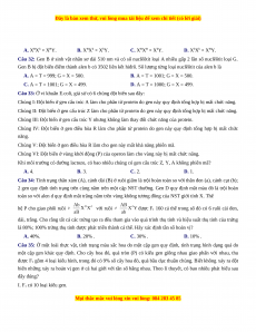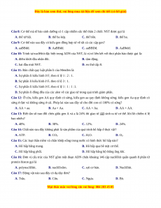 Câu 32: Gen B ở sinh vật nhân sơ dài 510 nm và có số nuclêôtit loại A nhiều gấp 2 lần số nuclêôtit loại G.