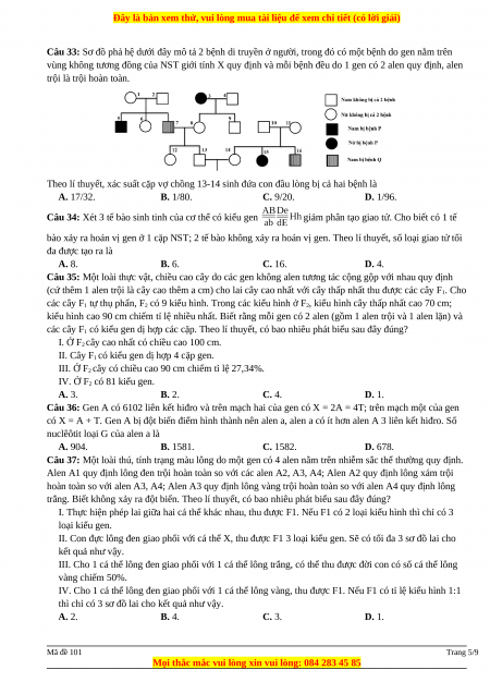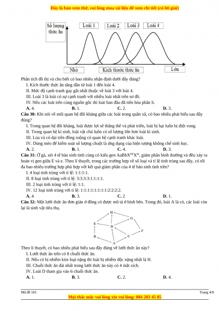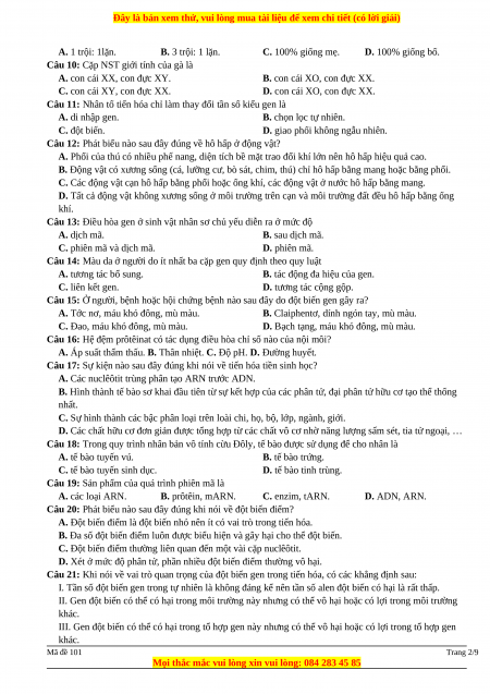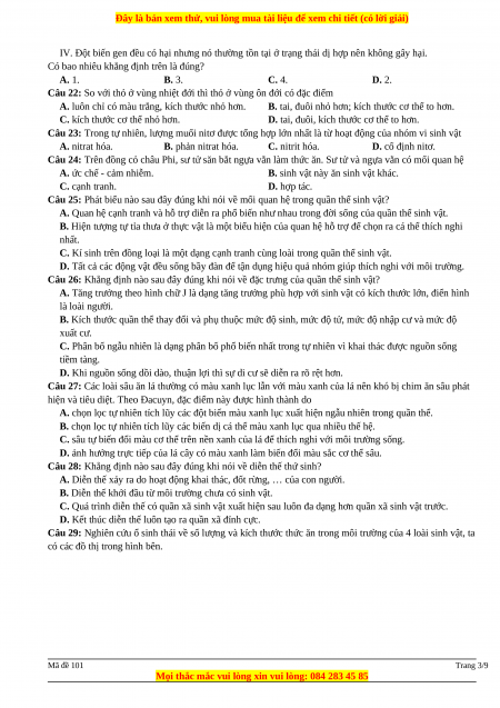 III. Gen đột biến có thể có hại trong tổ hợp gen này nhưng có thể vô hại hoặc có lợi trong tổ hợp gen khác. Mã đề 101 Trang 2/9