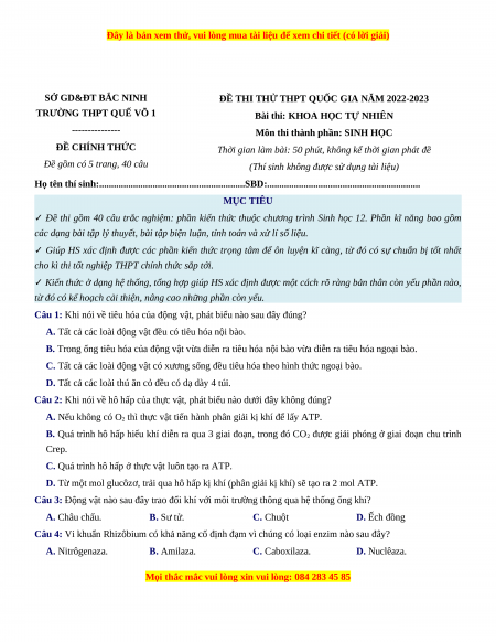 Họ tên thí sinh:............................................................SBD:............................................................... MỤC TIÊU