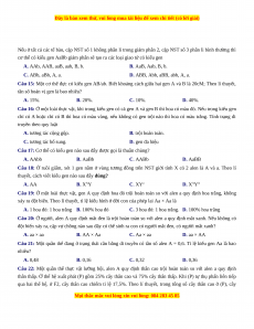Câu 20: Ở người, alen A quy định mắt đen là trội hoàn toàn so với alen a quy định mắt xanh. Nếu không có