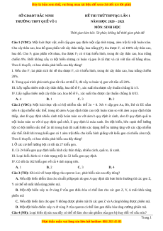 NĂM HỌC 2020 – 2021 MÔN: SINH H C Ọ Th i