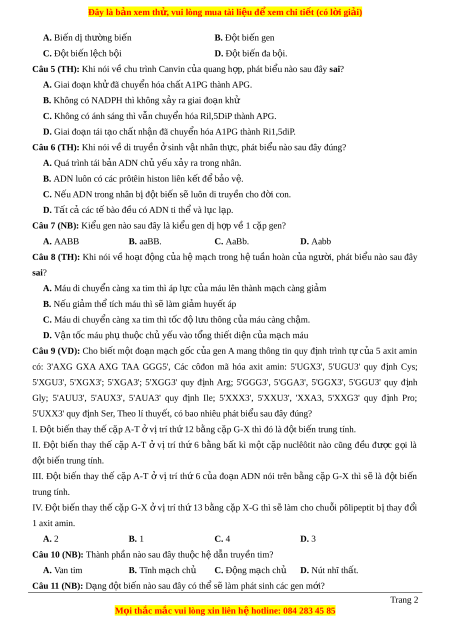 Đây là bản xem th , vu ử i lòng mua tài li u ệ đ xe ể m chi ti t ế (có l i ờ gi i ả ) A. Biến d t ị hư ng ờ bi n ế B. Đ t ộ bi n ge ế n C. Đ t ộ biến l c ệ h b i ộ D. Đ t ộ biến đa b i ộ .