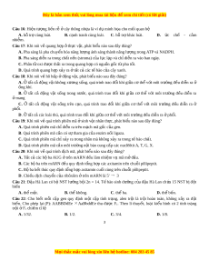 Câu 20: Khi nói v quá ề trình d c ị h mã, phát bi u nà ể o sau đây đúng? A. Tất cả các b ba ộ AUG ở trên mARN đ u l ề àm nhi m ệ vụ mã mở đ u. ầ B. Các b ba ộ trên mARN đ u quy đ ề nh ị t ng ổ h p c ợ ác axitamin trên chu i ỗ pôlipeptit. C. B ba ộ kết thúc quy đ nh t ị ng ổ h p a ợ xitamin cu i ố cùng trên chu i ỗ pôlipeptit. D. Chiều d c ị h chuyển c a ủ ribôxôm t ở rên mARN là 5' 3 Câu 21: Đ u ậ Hà Lan có b ộ NST lư ng ỡ b i ộ 2n = 14. T ế bào sinh dư ng ỡ c a ủ đ u ậ Hà Lan ch a ứ 15 NST b ịđ t ộ biến A. thể m t ộ . B. thể không. C. thể ba. D. thể b n. ố Câu 22: Cho bi t ế m i ỗ c p ặ gen quy đ nh ị m t ộ c p ặ tính tr ng, ạ alen tr i ộ là tr i ộ hoàn toàn, không x y ả ra đ t ộ