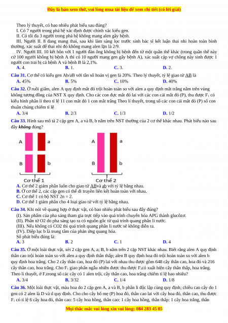 Câu 30. Ở người, bệnh A do 1 gen có 2 alen trên NST thường quy định, alen trội quy không bị