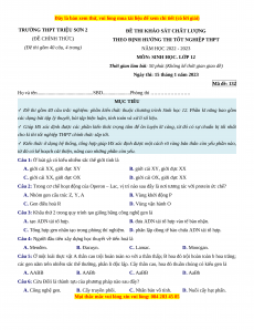 Câu 12: Dạng đột biến nào sau đây làm thay đổi cấu trúc nhiễm sắc thể? A. Tam bội. B. Một nhiễm. C. Tam nhiễm. D. Mất đoạn.
