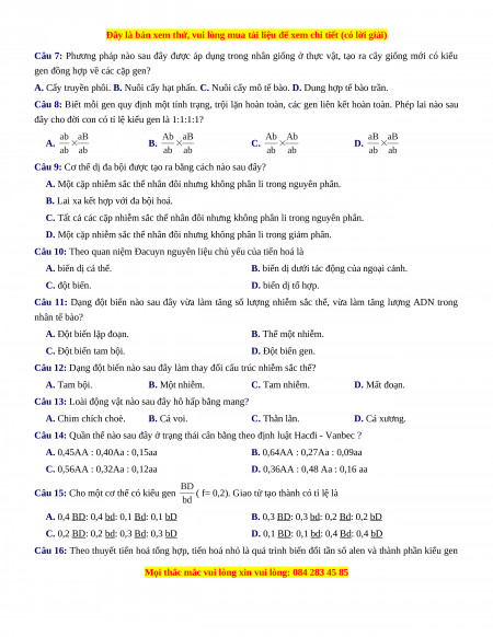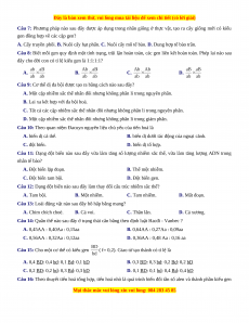 Câu 8: Biết mỗi gen quy định một tính trạng, trội lặn hoàn toàn, các gen liên kết hoàn toàn. Phép lai nào sau