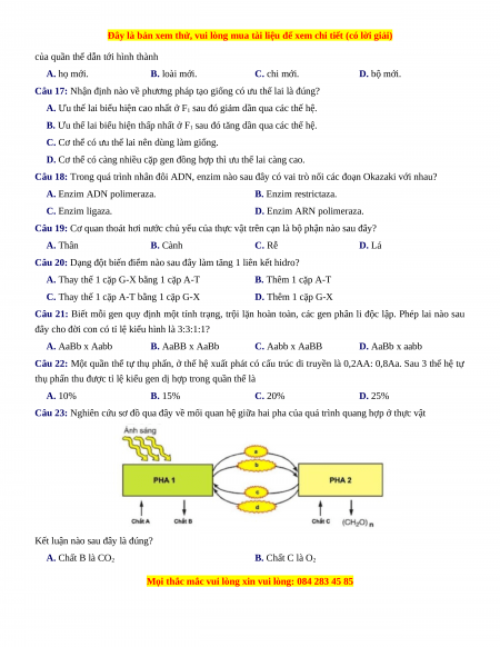Câu 18: Trong quá trình nhân đôi ADN, enzim nào sau đây có vai trò nối các đoạn Okazaki với nhau?