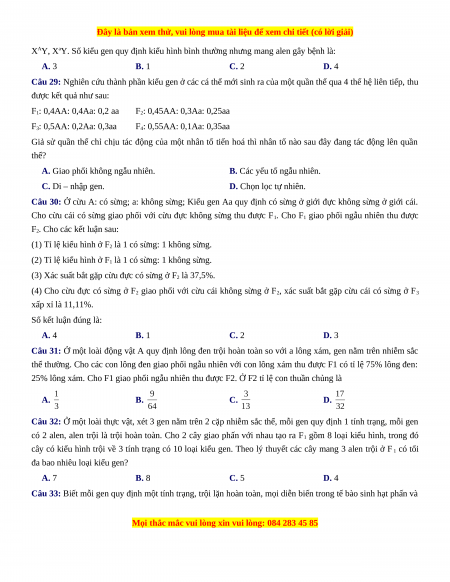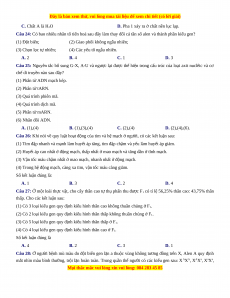 Câu 24: Có bao nhiêu nhân tố tiến hoá sau đây làm thay đổi cả tần số alen và thành phần kiểu gen? (1) Đột biến;