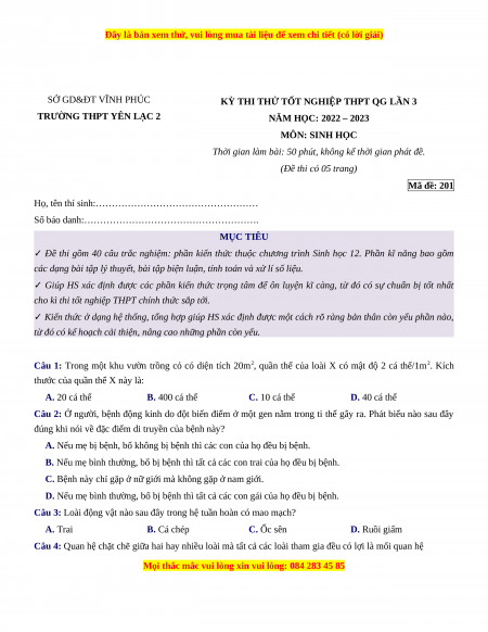 - Đề thi THPT Quốc Gia Sinh học trường THPT Yên Lạc 2 - Vĩnh Phúc lần 1 năm 2023 bản word có lời giải chi tiết.