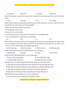 Câu 12: Các bộ ba AGU, AGX cùng mã hóa cho axit amin Xêrin, đây là ví dụ thể hiện mã di truyền có