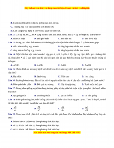 Câu 18: Biết quá trình giảm phân không phát sinh đột biến và có hoán vị gen xảy ra. Theo lí thuyết, cơ thể