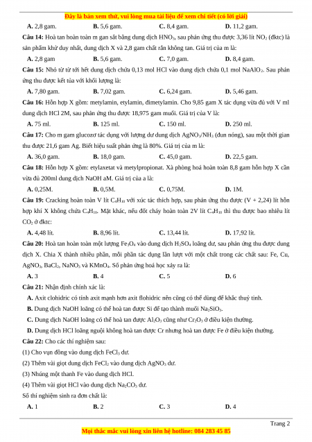 Câu 14: Hoà tan hoàn toàn m gan sắt bằng dung dịch HNO3, sau phản ứng thu được 3,36 lít NO2 (đktc) là