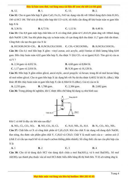 Câu 36: Trong phòng thí nghiệm, khí C được điều chế bằng bộ dụng cụ như hình sau: