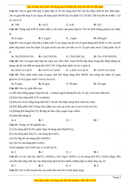 Câu 23: Cho sơ đồ chuyển hóa sau (mỗi dấu mũi tên là một phản ứng): Trang 2