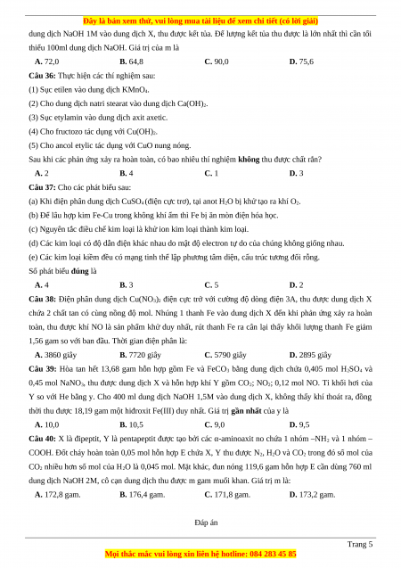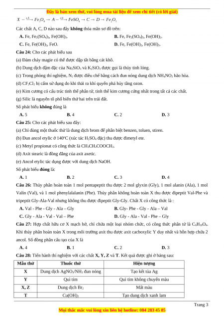 Câu 26: Thủy phân hoàn toàn 1 mol pentapeptit thu được 2 mol glyxin (Gly), 1 mol alanin (Ala), 1 mol
