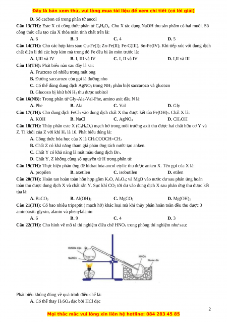 Câu 16(NB): Trong phân tử Gly-Ala-Val-Phe, amino axit đầu N là: A. Phe B. Ala C. Val D. Gly