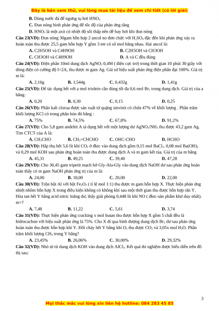 Câu 29(VD): Cho 30,45 gam tripetit mạch hở Gly-Ala-Gly vào dung dịch NaOH dư sau phản ứng hoàn