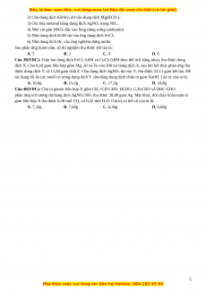 Câu 5(NB): Focmanlin (còn gọi là focmon) được dùng để ngâm xác thực vật, thuốc da, tẩy ếu, diệt