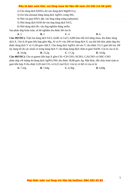 Câu 39(VDC): Trộn hai dung dịch FeCl