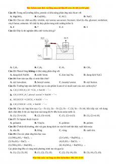 Câu 15: Trường hợp nào dưới đây tạo ra sản phẩm là ancol và muối natri của axit cacboxylic? A. B. C. D.