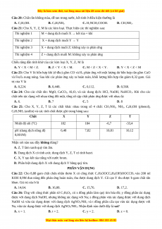 Câu 25: Cho X, Y, Z, T là các chất khác nhau trong số 4 chất: CH