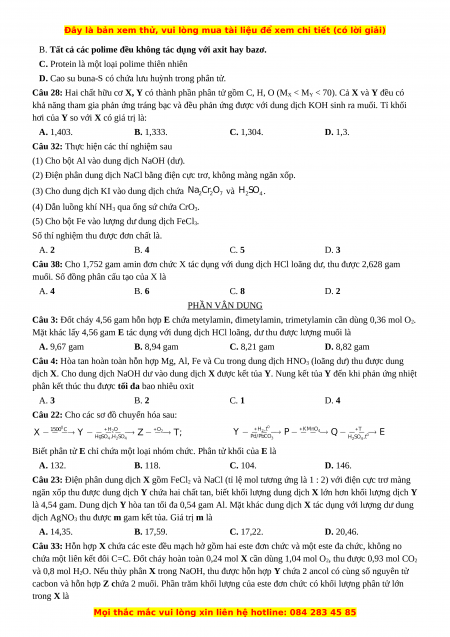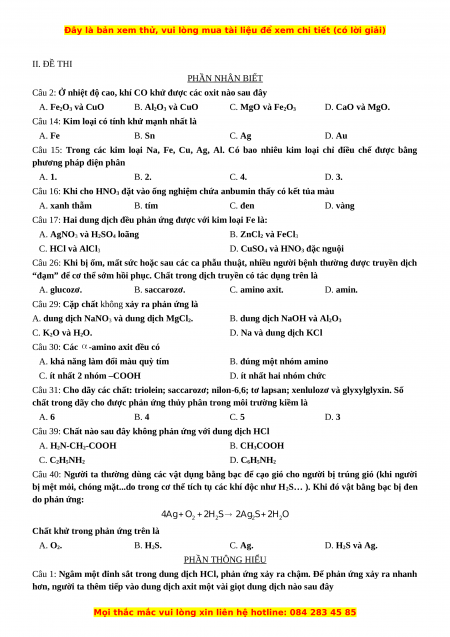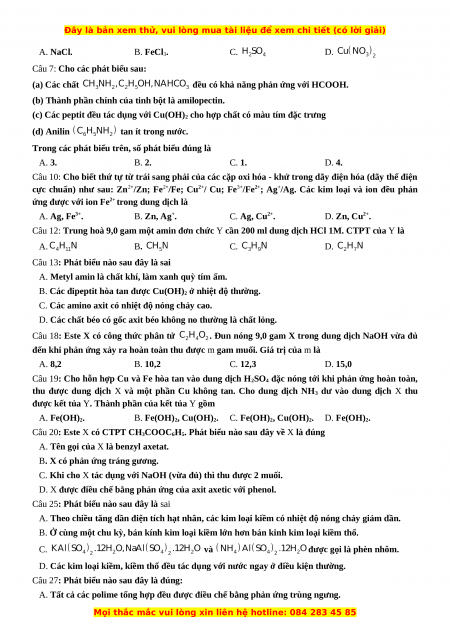 Câu 7: Cho các phát biểu sau: (a) Các chất