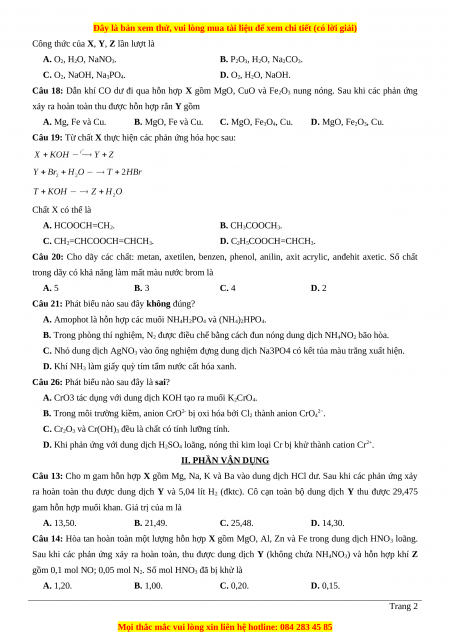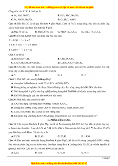 Câu 18: Dẫn khí CO dư đi qua hỗn hợp X gồm MgO, CuO và Fe2O3 nung nóng. Sau khi các phản ứng