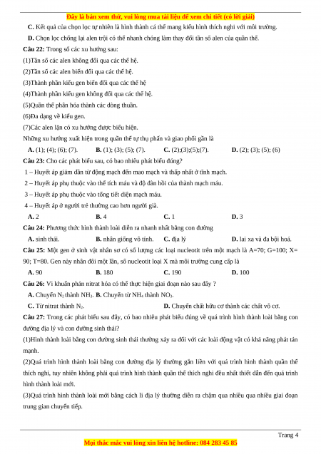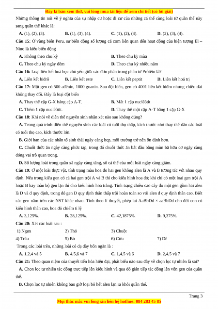 B. Chọn lọc tự nhiên không bao giờ loại bỏ hết alen lặn ra khỏi quần thể. Trang 3