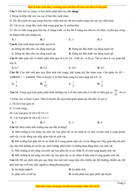 Đây là bản xem thử, vui lòng mua tài liệu để xem chi tiết (có lời giải)