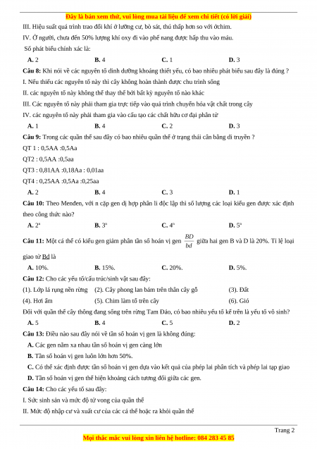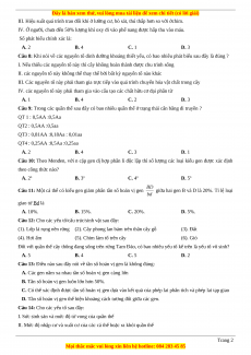Câu 6: Một cơ thể dị hợp tử 3 cặp gen nằm trên 2 cặp nhiễm sắc thể tương đồng, khi giảm phân tạo giao