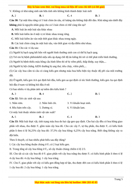 Câu 5: Hoạt động của nhóm sinh vật nào dưới đây có thể chuyển nitrate (NO - + 3 ) thành amôn (NH4 ) để